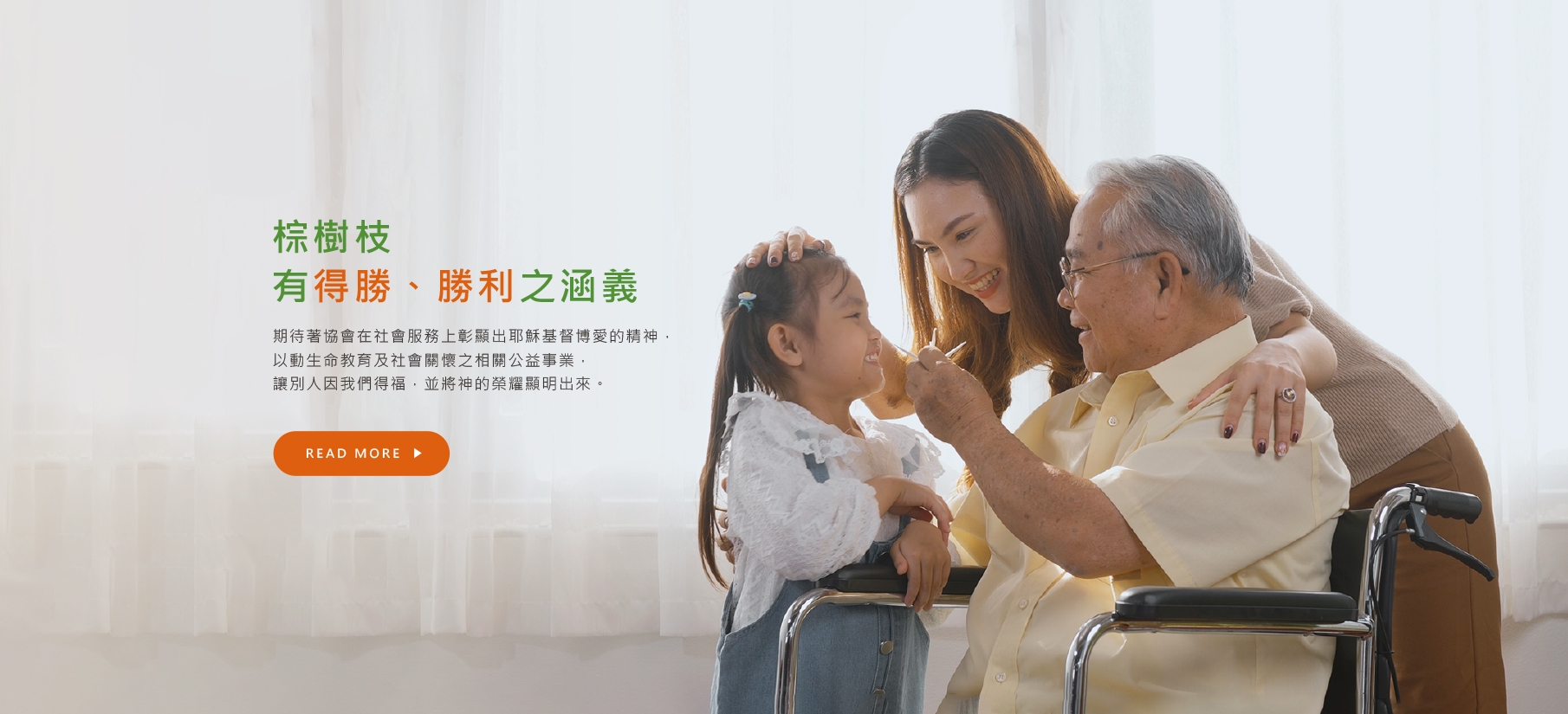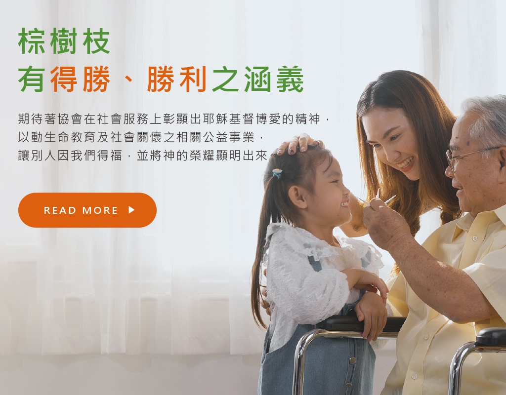 棕樹枝有得勝、勝利之涵義(參:聖經-約十二13;啟七4、9-10,十五2),期待著協會在社會服務上彰顯出耶穌基督博愛的精神,以動生命教育及社會關懷之相關公益事業,讓別人因我們得福,並將神的榮耀顯明出來。